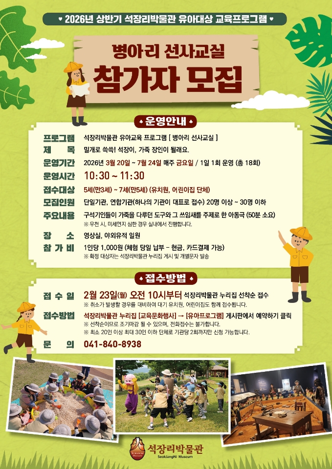 2026년 상반기 석장리박물관 유아대상 교육프로그램