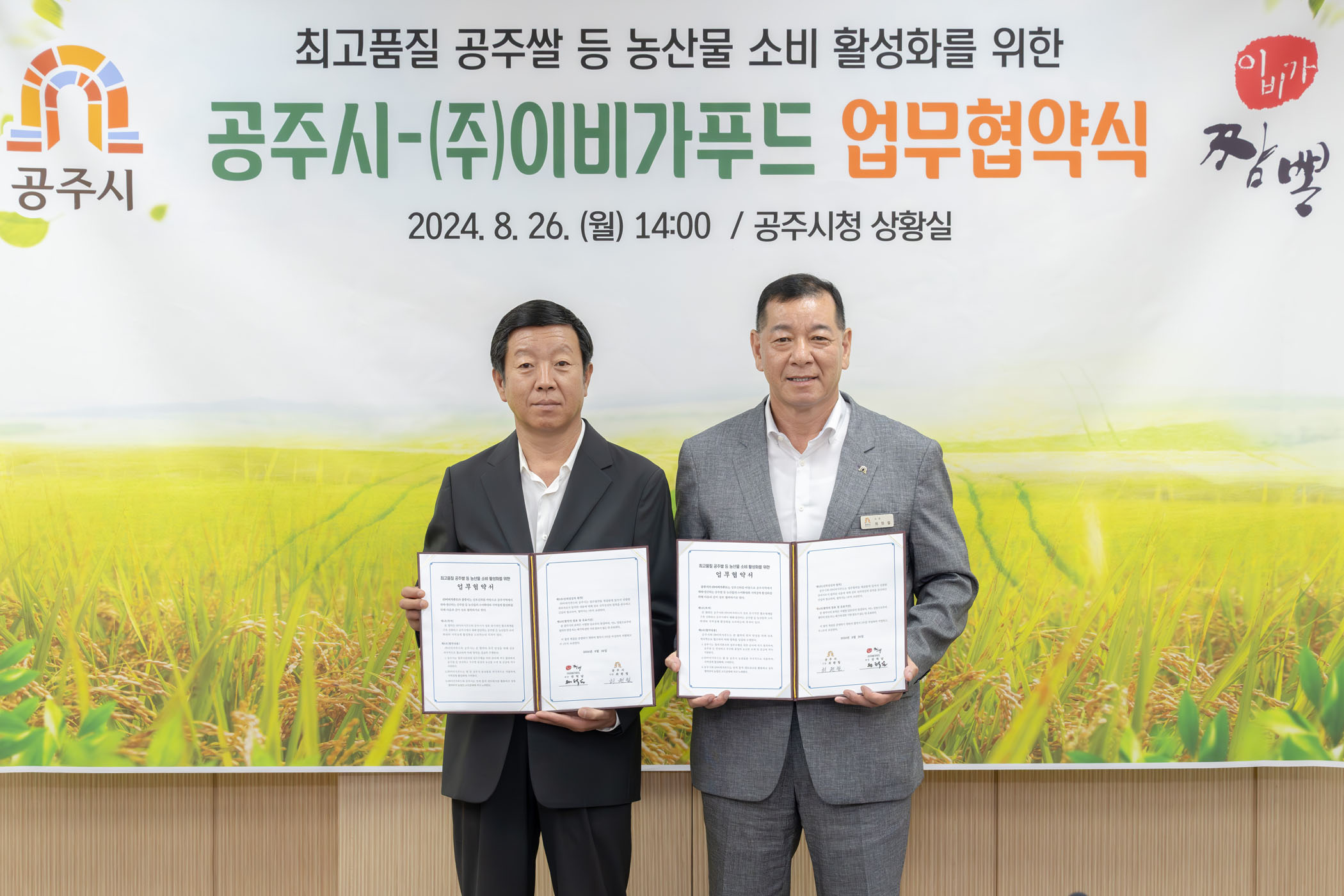 2024년 8월 26일 공주쌀 소비 활성화를 위한 공주시-이비가푸드 업무협약식 [상황실]